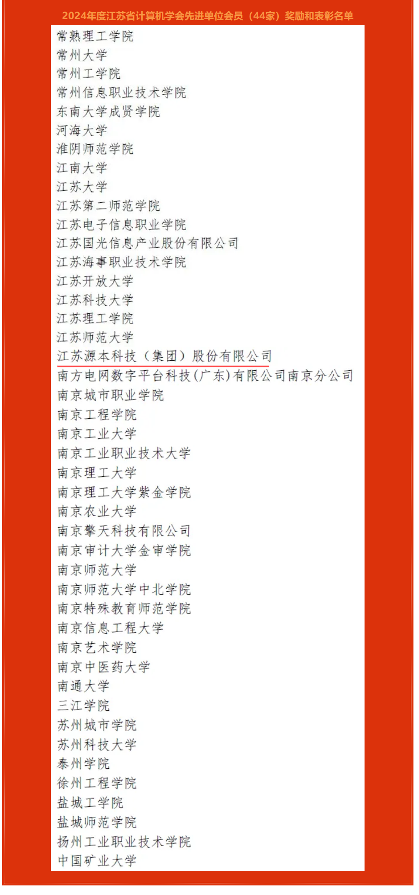 喜讯!热烈庆祝江苏公海555000官网科技(集团)股份有限公司荣获江苏省计算机学会2024年度先进单位会员